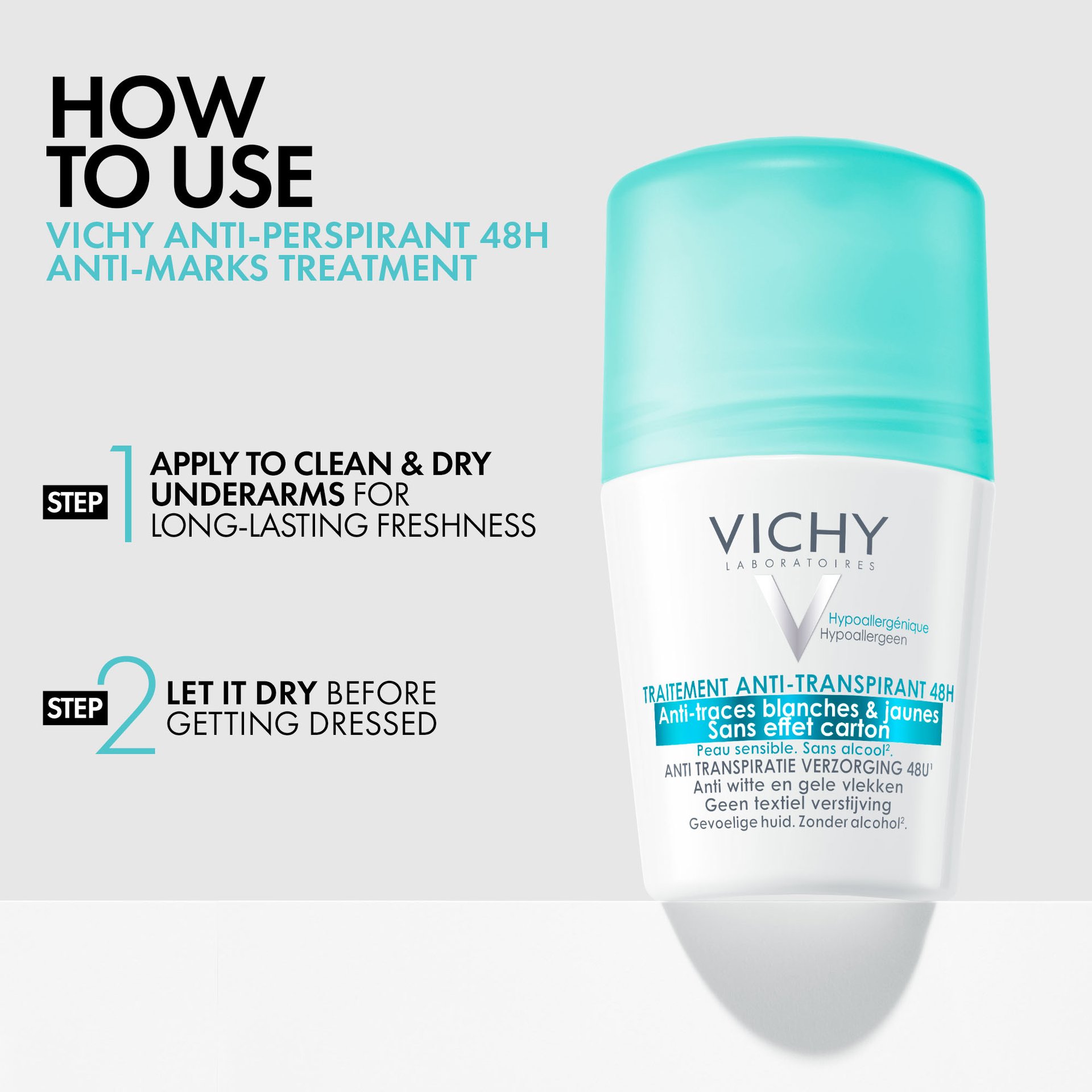 CLINICALLY PROVEN 48-HOUR PROTECTION AGAINST HEAVY PERSPIRATION – ALCOHOL-FREE AND GENTLE ON SENSITIVE SKIN.