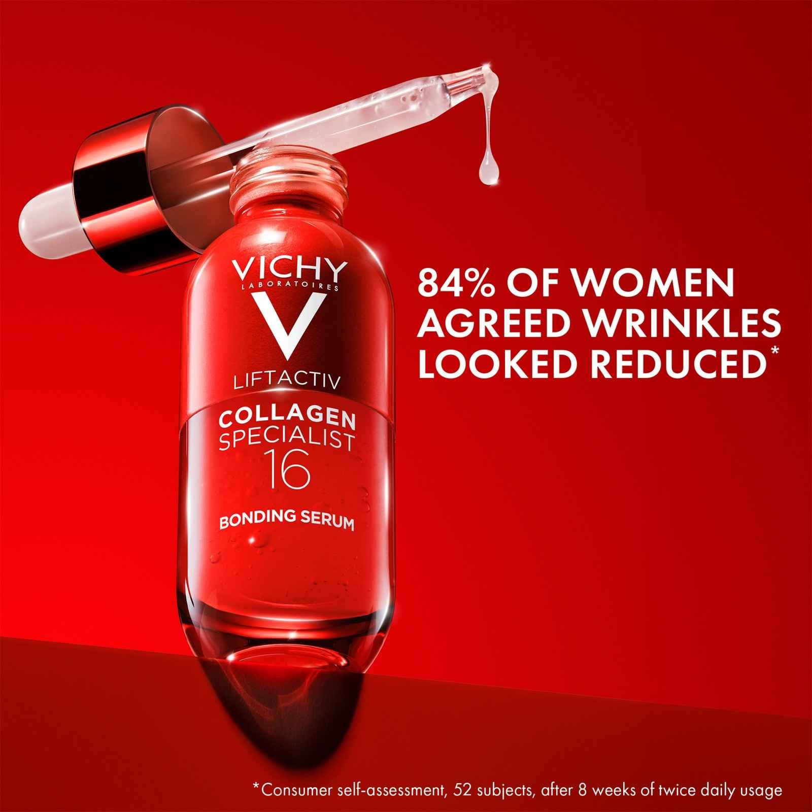 Liftactiv Collagen Specialist 16 Bonding Serum is a powerful collagen peptide serum by Vichy designed to boost skin affected by the loss of collagen and its bonds.¹ This collagen-boosting serum helps skin look visibly plumper, firmer and more radiant.