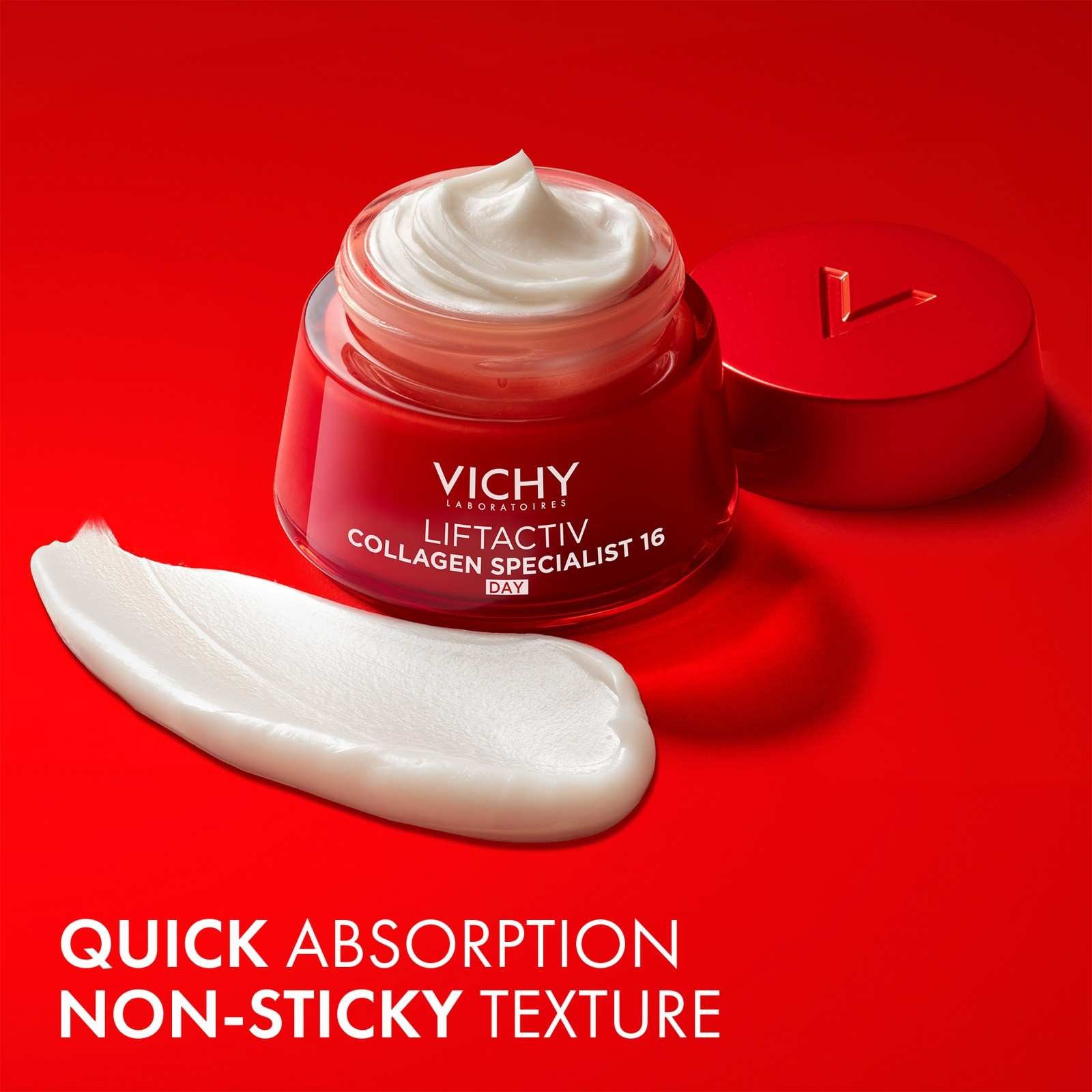 Liftactiv Collagen Specialist 16 Day Cream is a collagen-boosting peptide cream by Vichy designed to target visible ageing signs linked to collagen loss¹. This advanced collagen-lifting cream helps skin look smoother, firmer and more radiant throughout the day.